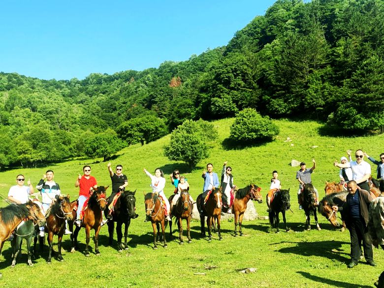 洗漱過后,我們就去騎馬巡山了。一邊騎著馬兒,一邊聽著《大王叫我來巡山》的歌曲,還真是有點(diǎn)意思。在一片蔥綠的草地上,大家被眼前的美景吸引,又忍不住拿出手機(jī)拍個(gè)不停??鞓返拿篮脮r(shí)光總是短暫的,愉快的旅程結(jié)束了,大家開車結(jié)伴返回西安,明天又要開始新的忙碌。再見了,關(guān)山牧場(chǎng)!