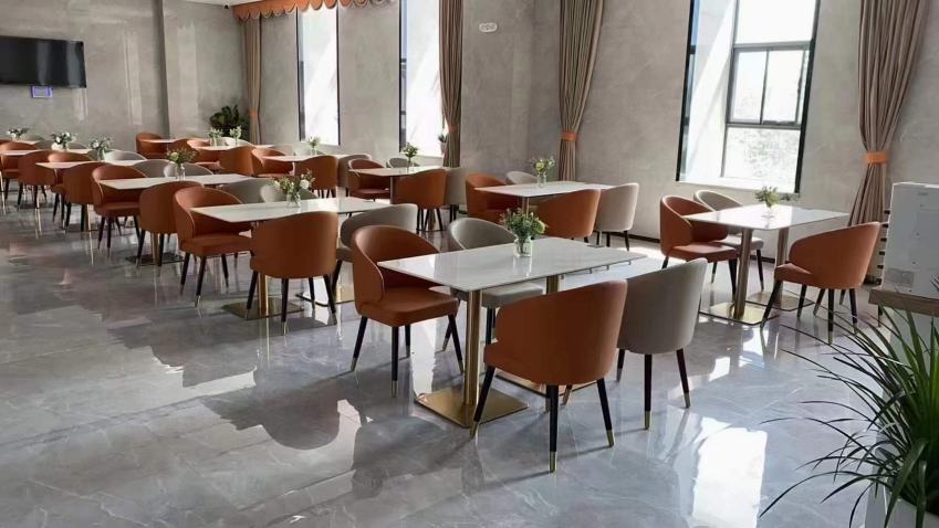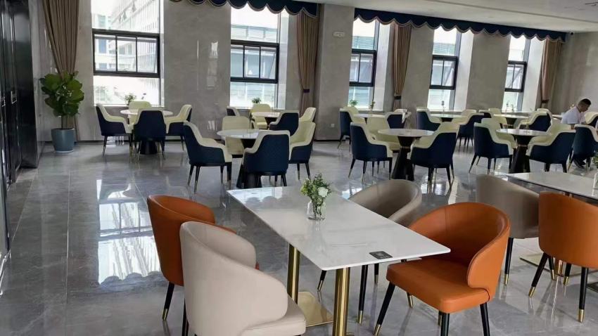 在為4S店推薦餐桌椅過程中,考慮到以上兩點(diǎn),我們建議客戶使用當(dāng)下流行的巖板餐桌,它不僅耐刮耐磨抗油污上檔次,而且避免了實(shí)木餐桌的開裂問題,同時(shí)輕奢風(fēng)格的巖板具有時(shí)尚潮流,非常深受4S店年輕員工的喜愛。