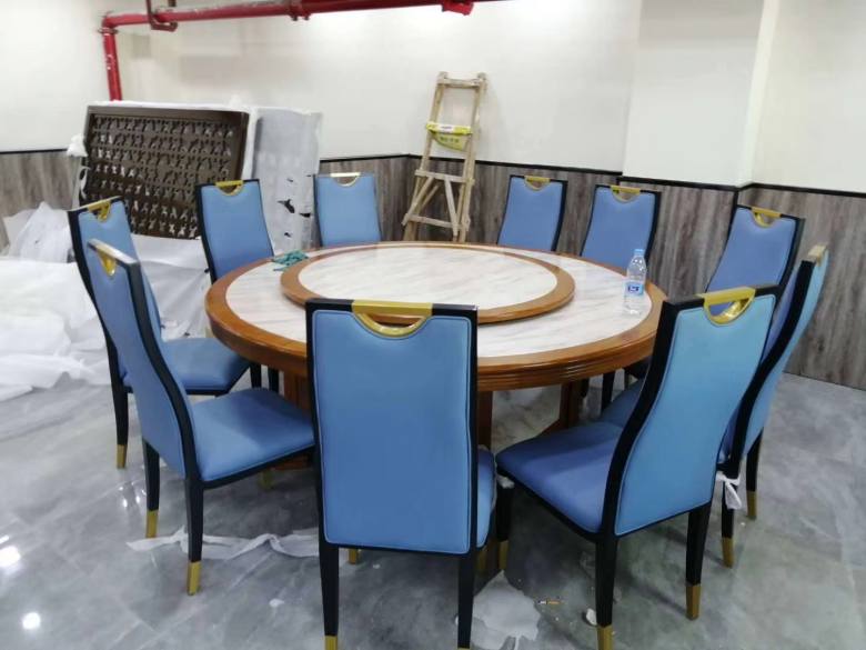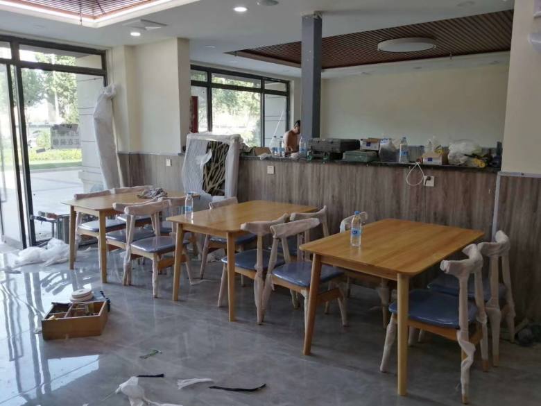 下圖為現場安裝餐桌椅實拍: