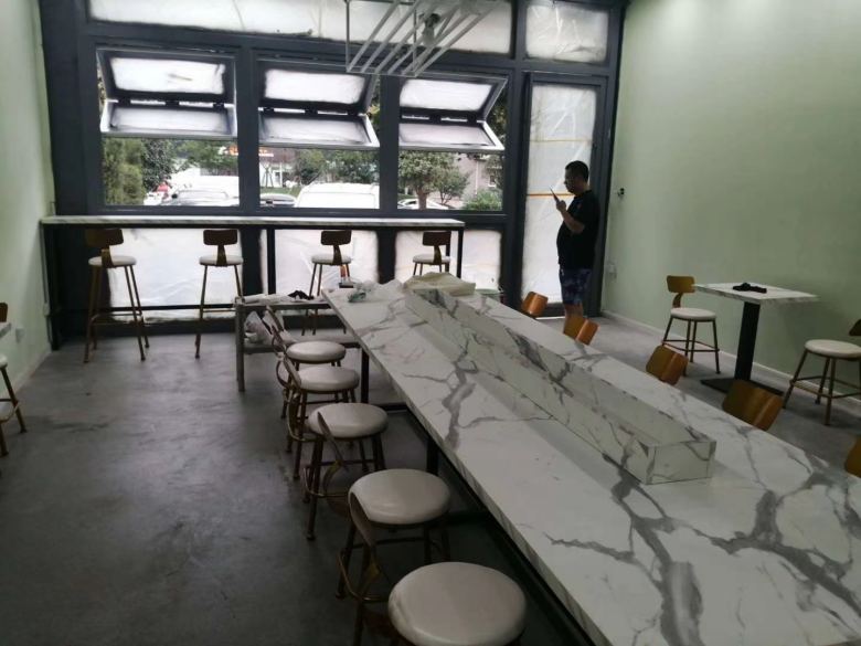 我廠承接的西安鮮螺螺螄粉餐館定制餐桌椅工程正式交工,家具安裝完畢后,大理石臺(tái)面餐桌看上去非常的上檔次,客戶(hù)對(duì)于我廠生產(chǎn)的餐桌椅給予了高度贊揚(yáng)。