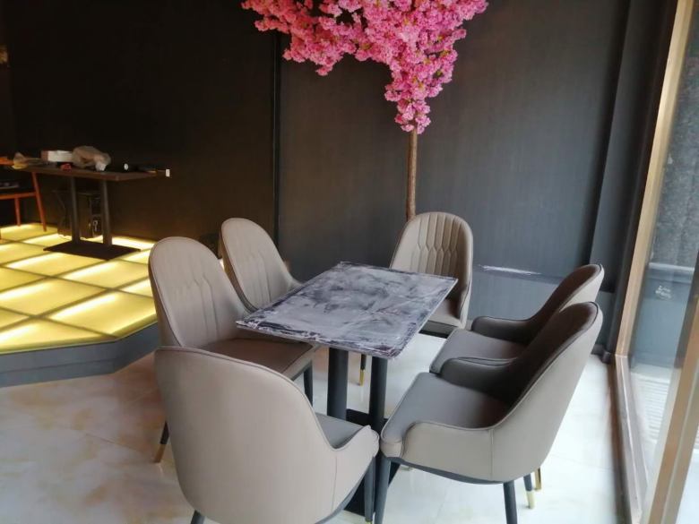 無烊音樂餐吧采購的桌子采用巖板臺面和鐵藝桌腿組合而成,巖板餐桌椅大氣耐用,特有的石材色調(diào)能夠迅速提升店面的檔次??ㄗ嘲l(fā)定制以及沙發(fā)椅均有嚴(yán)格要求,我廠依據(jù)客戶需求完美呈現(xiàn)出了家具成品。