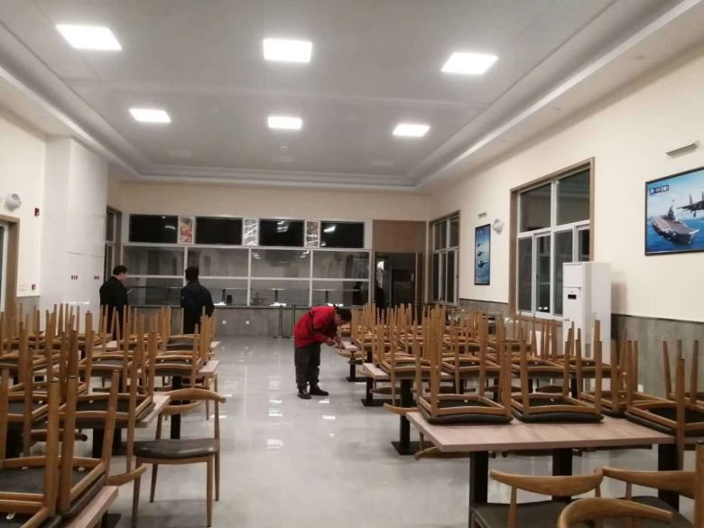 西安慶安公司員工餐廳食堂餐桌椅進場交貨