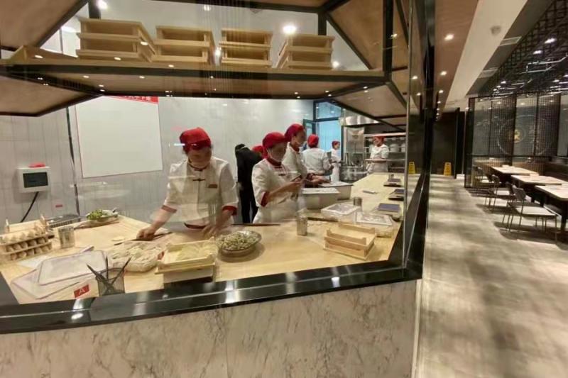 慶陽餃滿天下餐桌椅卡座沙發(fā)圓滿交付使用
