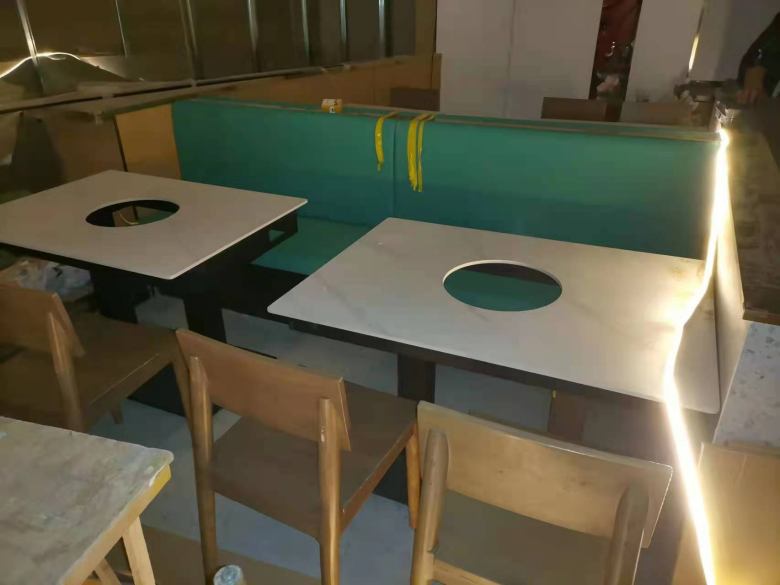 西安映巷簡骨藕湯火鍋桌椅卡座沙發(fā)交貨現(xiàn)場