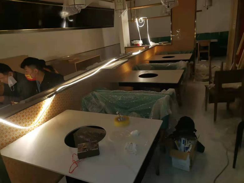 11月4日,西安火鍋桌廠家安裝工人跟隨貨車為映巷簡骨藕湯火鍋新店安裝生產(chǎn)好的火鍋桌椅及卡座沙發(fā)等餐飲家具。小編在現(xiàn)場看到,我們的工人從貨車卸下家具后有條不紊的開始組裝擺放,一個個嶄新的家具就位后頓時讓原本空蕩蕩的店充滿了濃濃的氛圍。