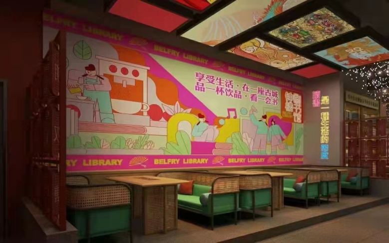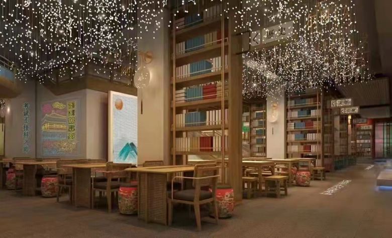 西安長安大排檔之鐘樓圖書館店餐飲桌椅定制案例
