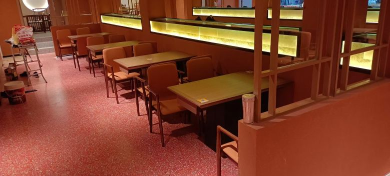 餐桌擯棄了常規(guī)的快餐店標配桌椅(實木顆粒板或實木多層板配碳素鋼底架),而是采用實木+實木多層貼木皮烤漆桌面,還帶有抽屜功能,桌架也采用箱式結構,給人一種厚實穩(wěn)重的感覺。更重要的是餐椅。一般的快餐店餐椅大多采用鐵藝,價格便宜,而潼關優(yōu)品肉夾饃則選用上等純實木框架,搭配廣東優(yōu)質耐磨抗污皮革和高回彈海綿,即使是一個外行,也能直觀感受這些實木餐椅所帶來的超乎尋常的舒適度。