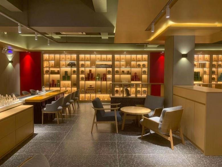 按照裝修公司提供的平面圖和裝修效果圖,我廠為高端茶品牌引領(lǐng)者西安大益茶茶館聚力打造的定制家具全部完工。