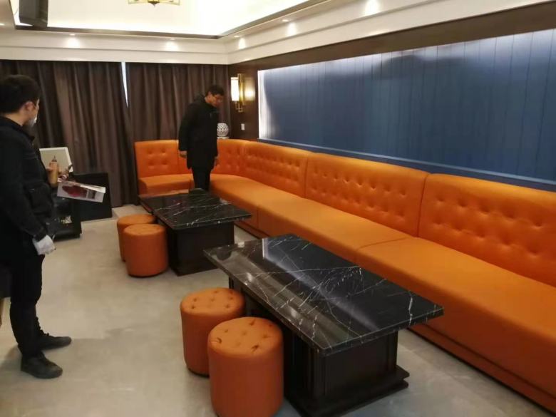 經(jīng)過溝通后,設計師明白了客戶的需求,客房的裝修以中式風格為主,酒店家具也以新中式設計為主,包括酒店床、酒店沙發(fā)、酒店辦公桌椅、酒店包廂餐桌椅。另外,該民宿酒店還配備了KTV,因此,也需要定做KTV沙發(fā)和茶幾。