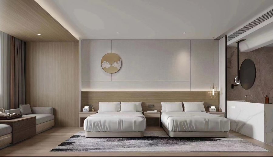 以下是按照效果圖裝修施工還原后的客房實拍圖